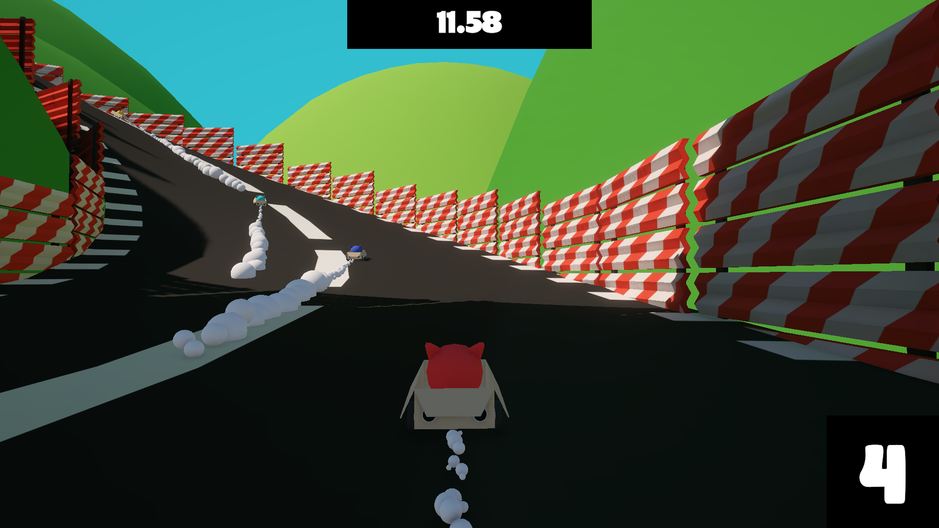 In this racing game, there are no bots or human players, there is only you. But everytime you cross the finish line, another kart appears and mimicks all the movement you did last turn. Will you be able to reach the first place while competing against yourself ?